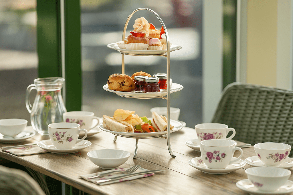 A mouth watering selection of dainty homemade cakes & sandwiches.