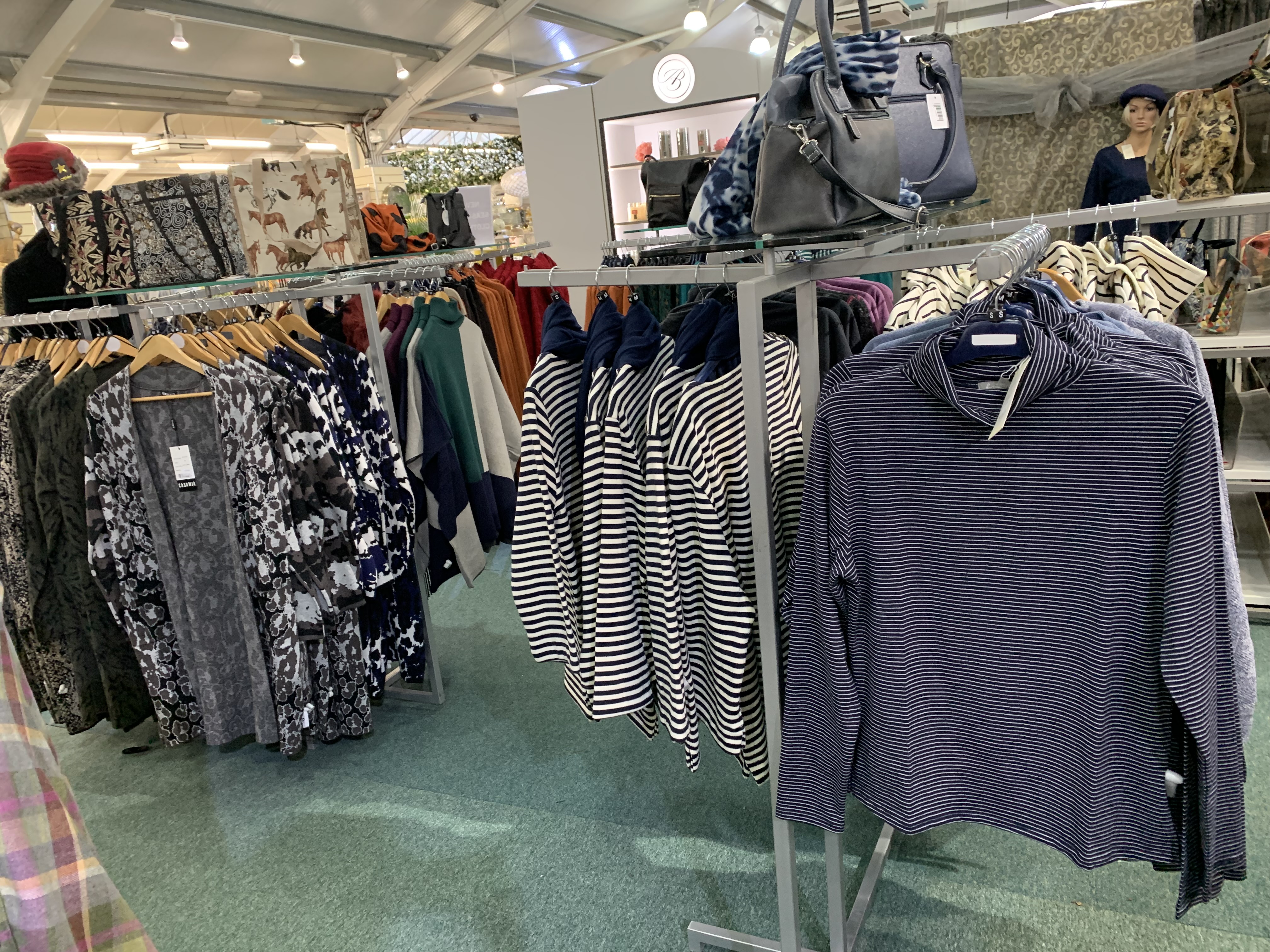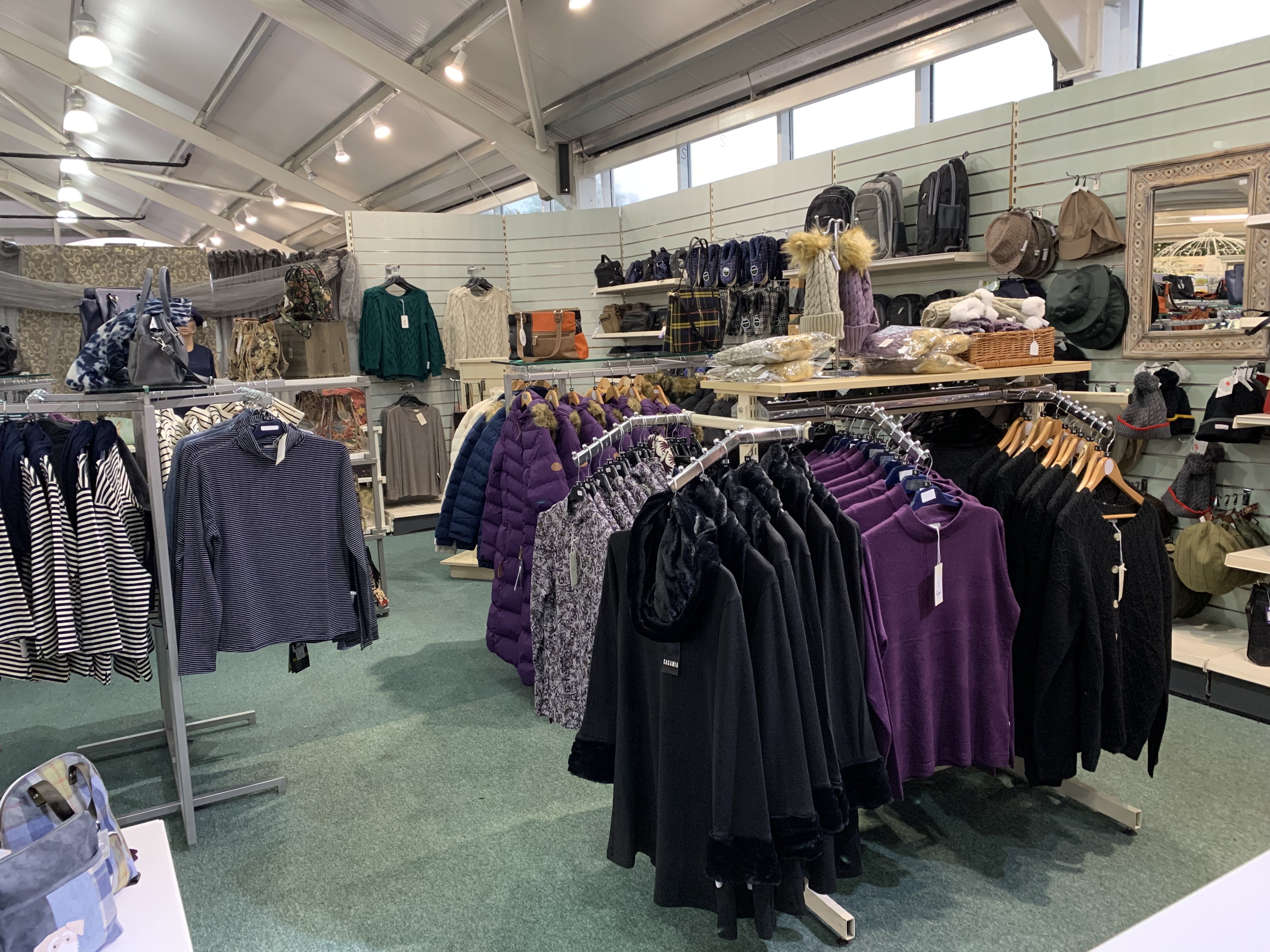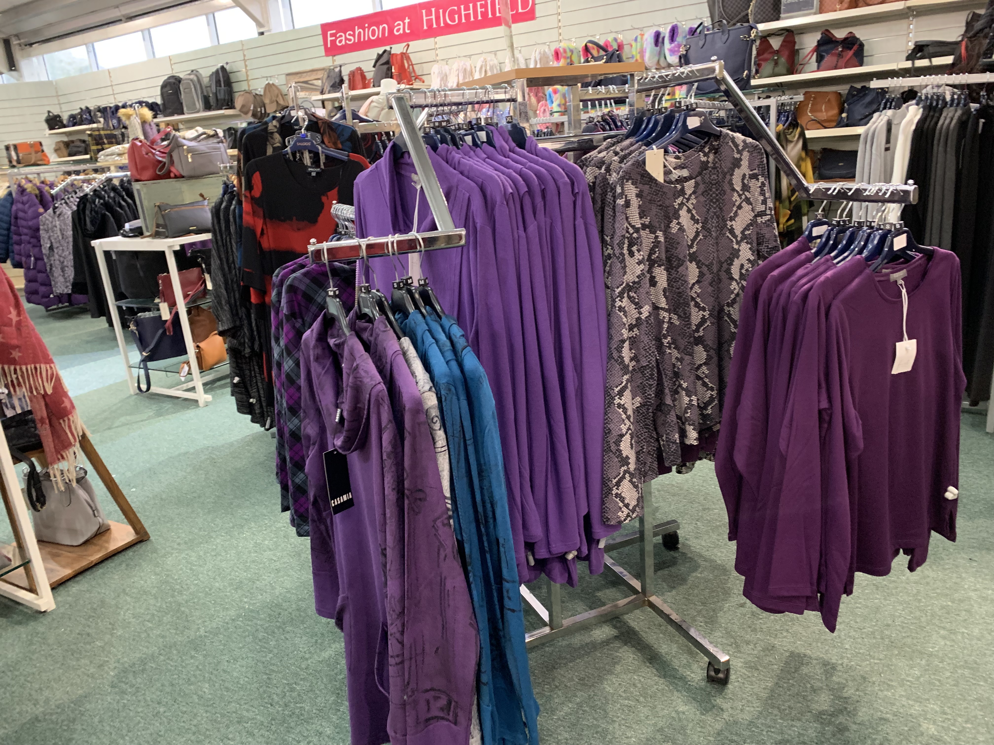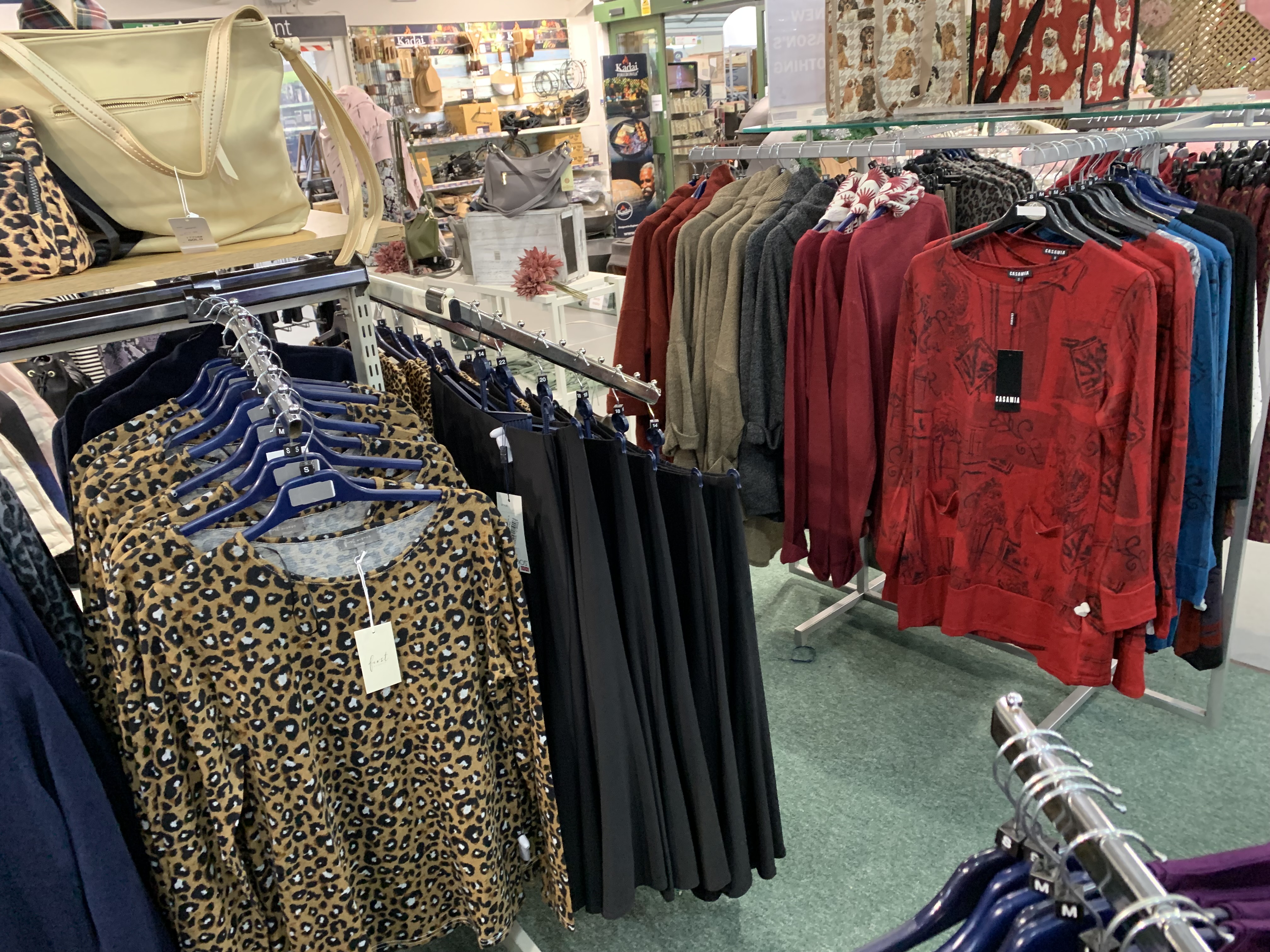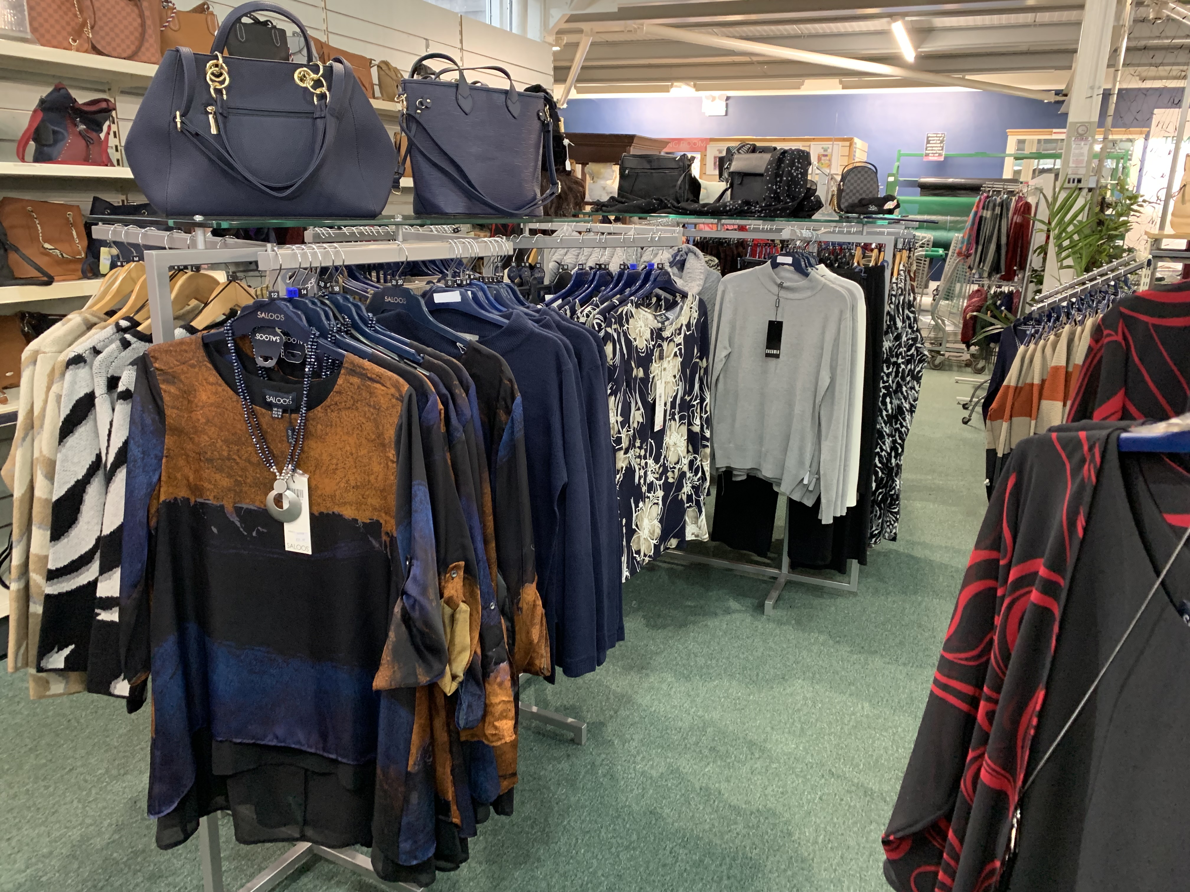 Our clothing department is ever-changing, with the seasons as well as current fashion trends. We also have a large selection of accessories from handbags to purses, scarves, jewellery and more.