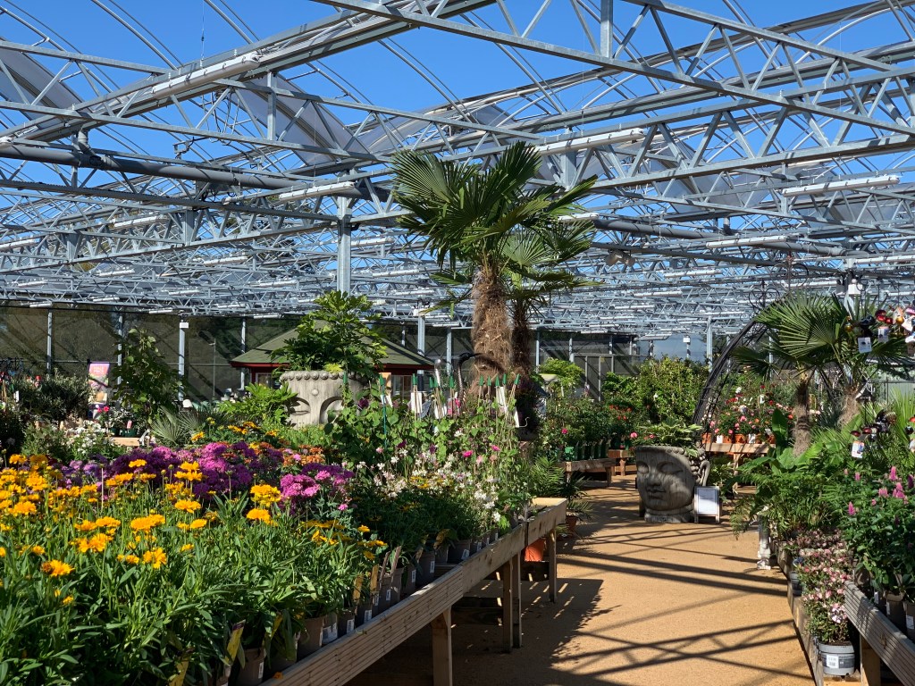 Our pioneering retractable roof over our planteria was a huge investment for us in both money and design time. But the result is that we now have a standout planteria space for our customers, and some extra environmental benefits as well. The roof is made up of 12 different sections – each of which we can open or shut individually. So when it’s raining we can let the rain in to naturally water the plants which need it, while covering those that don’t. Similarly with sunshine – we can have some or all of the roof sections open on sunny days depending on what is a comfortable ambient temperature in the area for our customers and staff. On balmy days it feels truly Mediterranean.