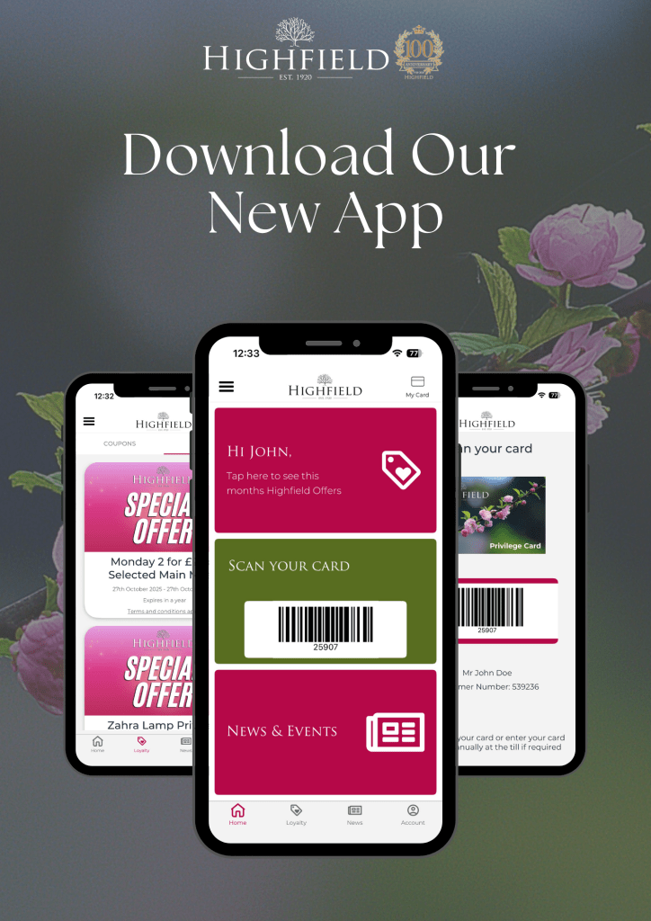 Highfield Garden World’s Privilege Plus app is the easiest way to enjoy all the benefits of your membership in one place. As a family-run garden centre, we’re dedicated to offering you the very best products – all with great value guaranteed.